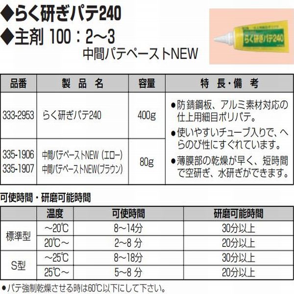 らく研ぎパテ240 400g 硬化剤別